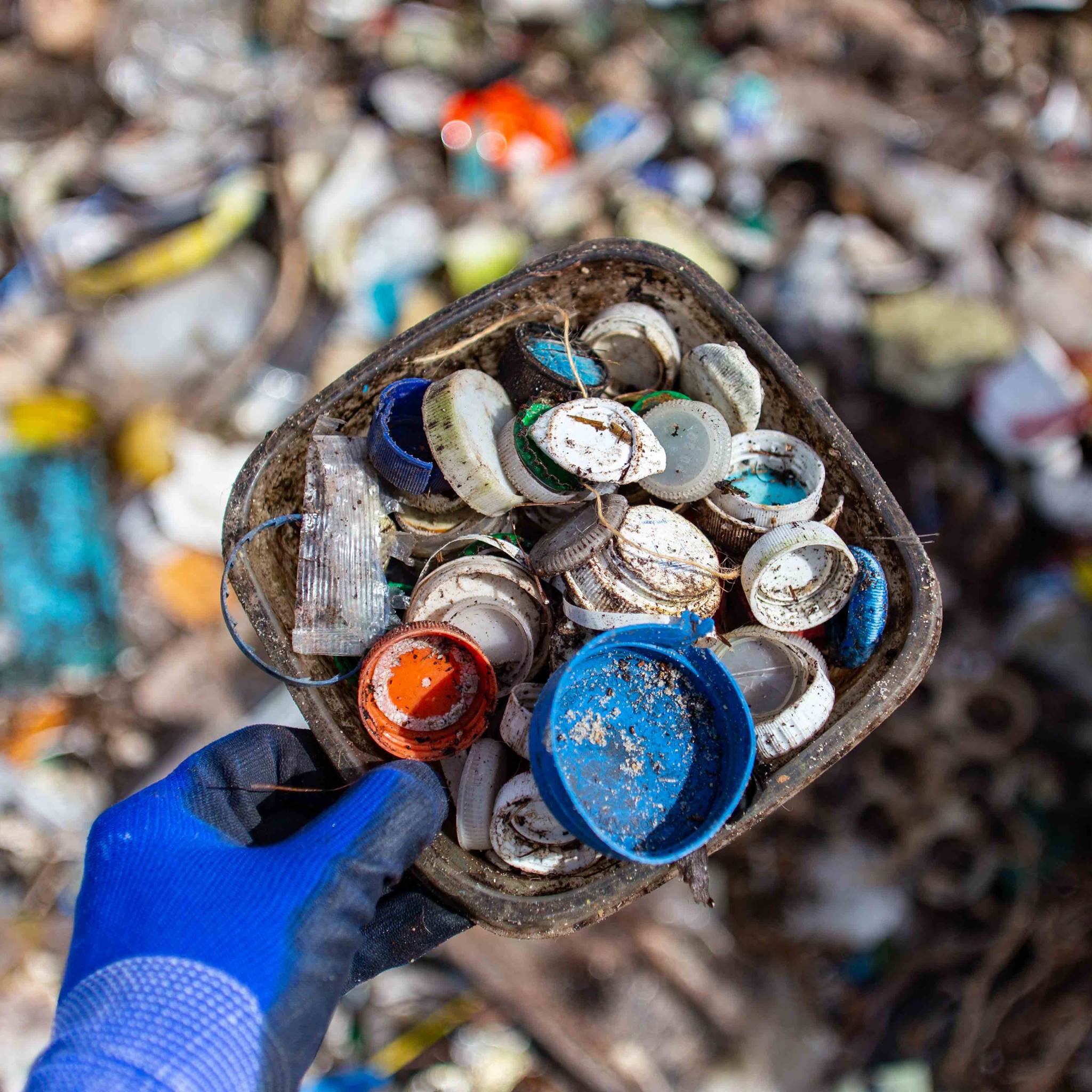 European action is taken to collect plastic lids since it represents a pollution problem that is increasing rapidly.