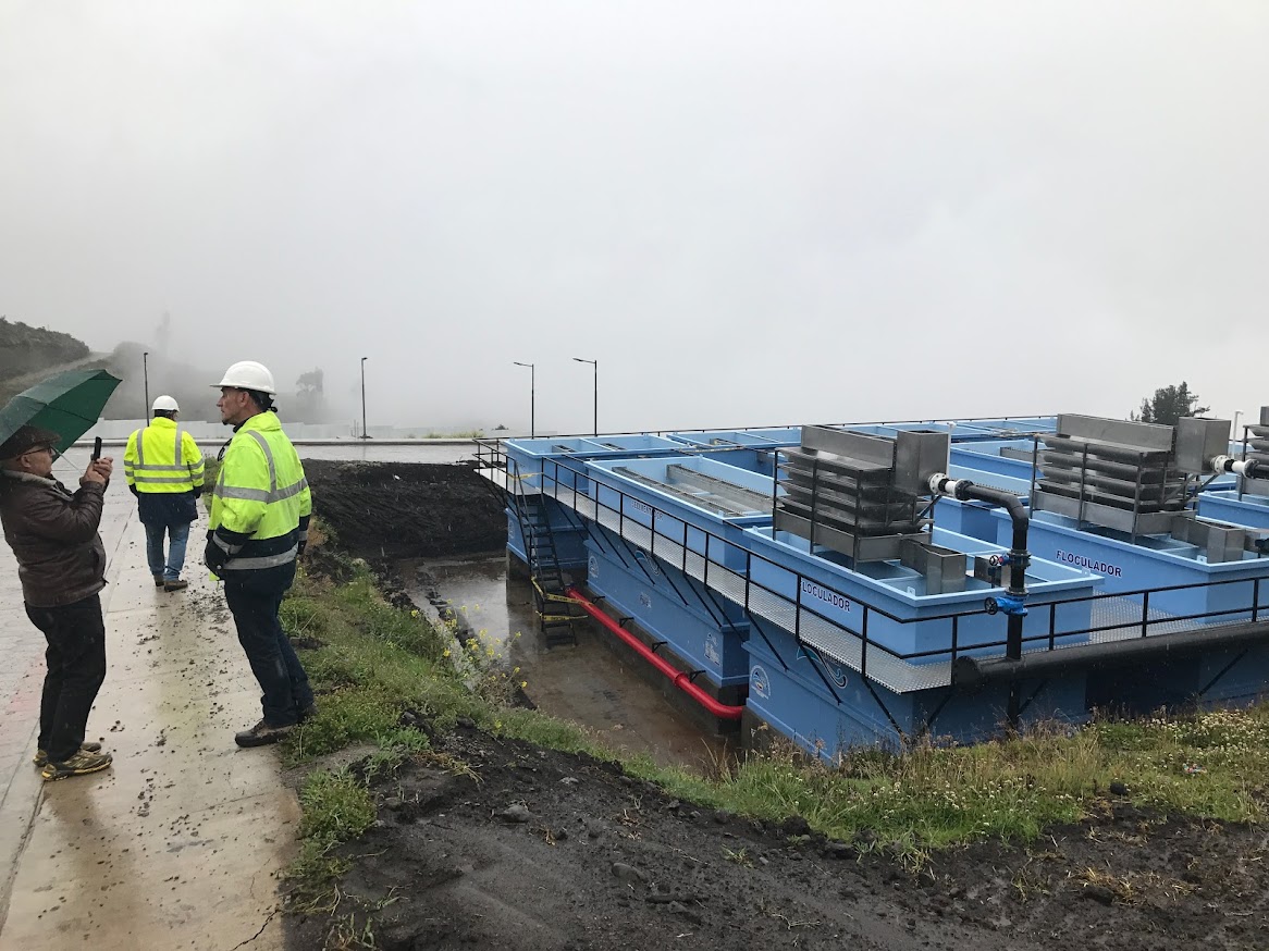 2_ MODULAR TYPE TREATMENT PLANT, with a total of 4 units, and an installed water treatment capacity of 100 l / s. Each module includes the following treatments: Aeration, Flocculation, Sedimentation, Filtration and Chlorination, and is in charge of delivering drinking water to the city of Pelileo.