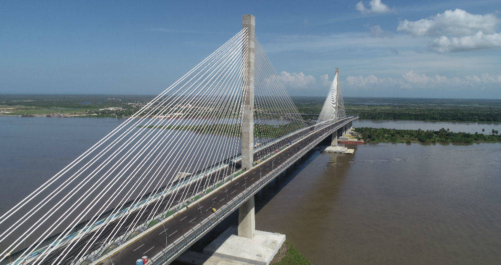 Completed in 2019, the Pumarejo bridge has improved the connectivity and navigability of the Magdalena River, allowing the passage of larger tonnage vessels. Thanks to this intervention, the height of the ships that can now pass under the bridge is 45 meters and the length of the cable-stayed main span is 380 meters.