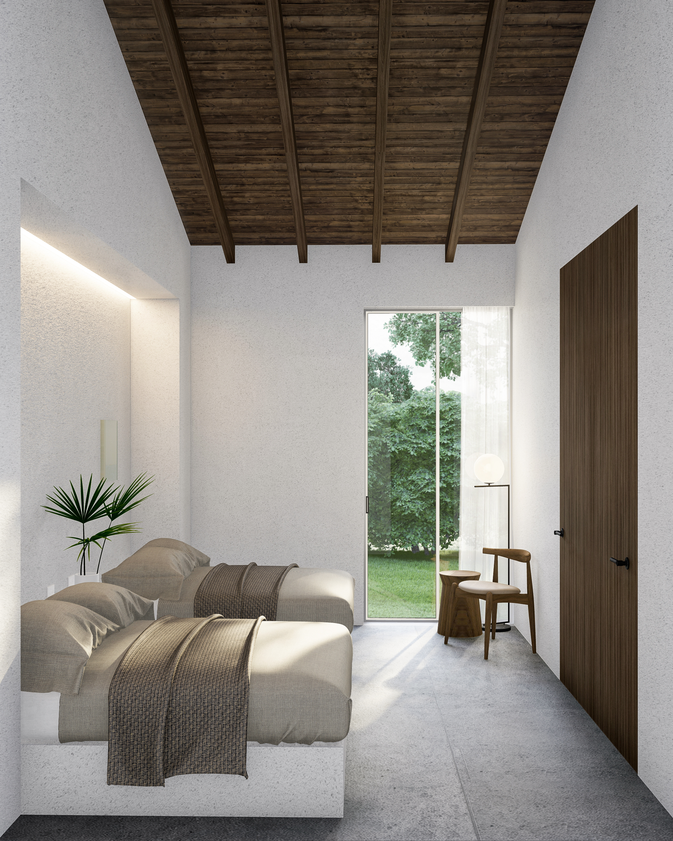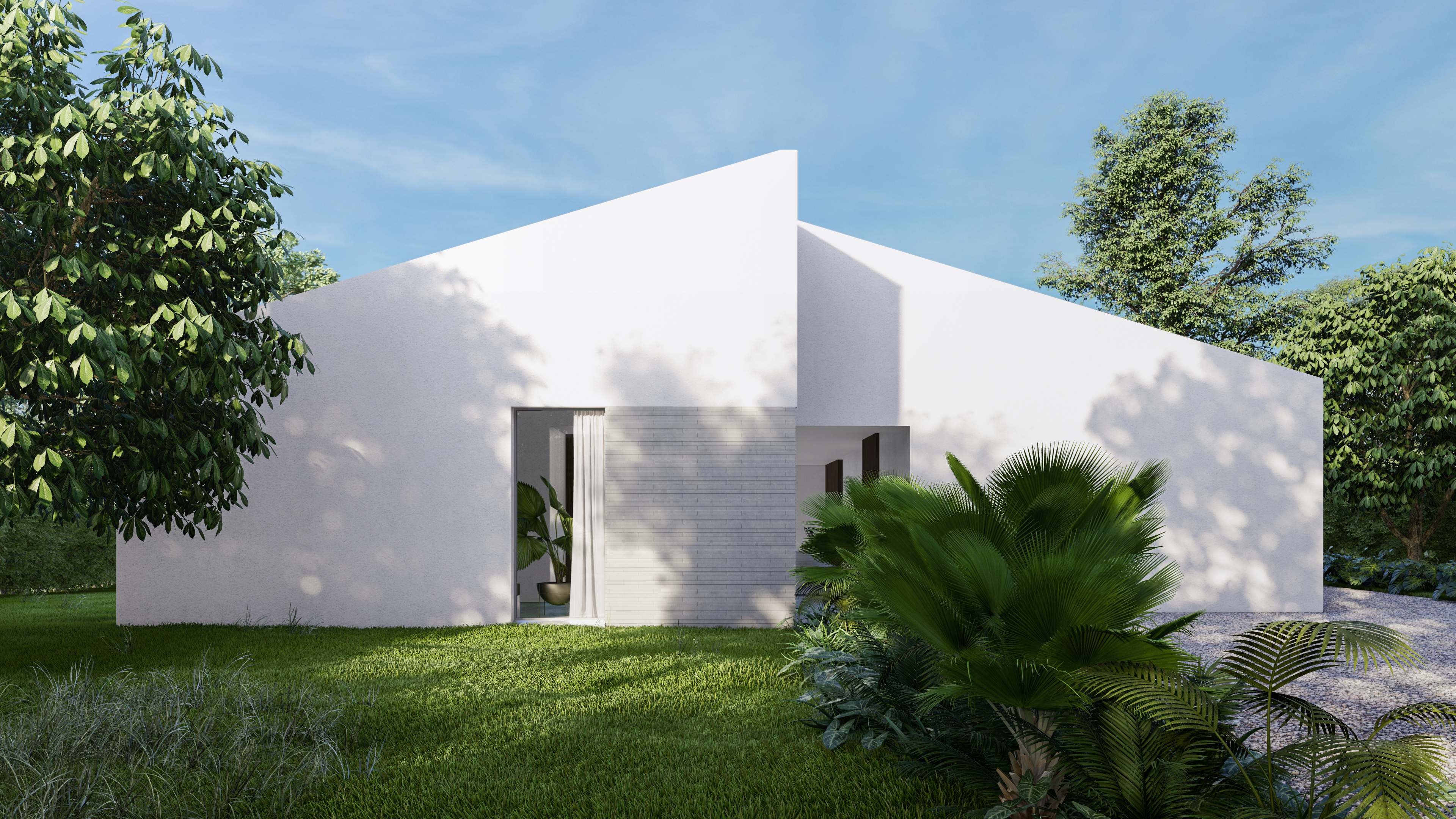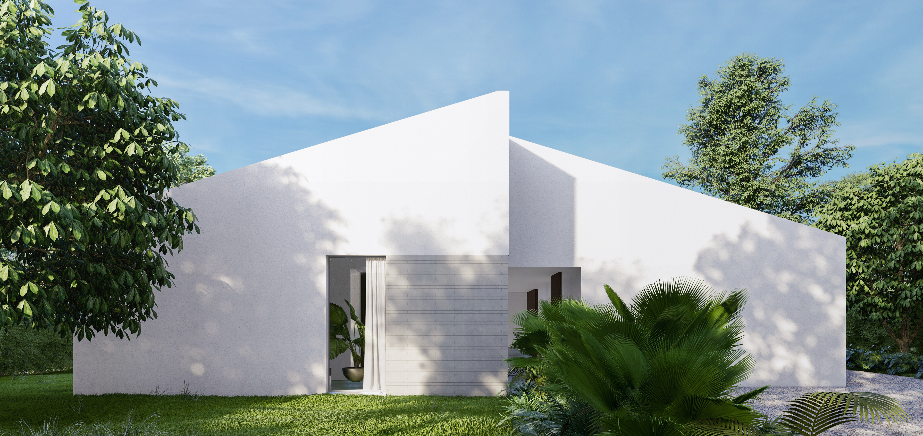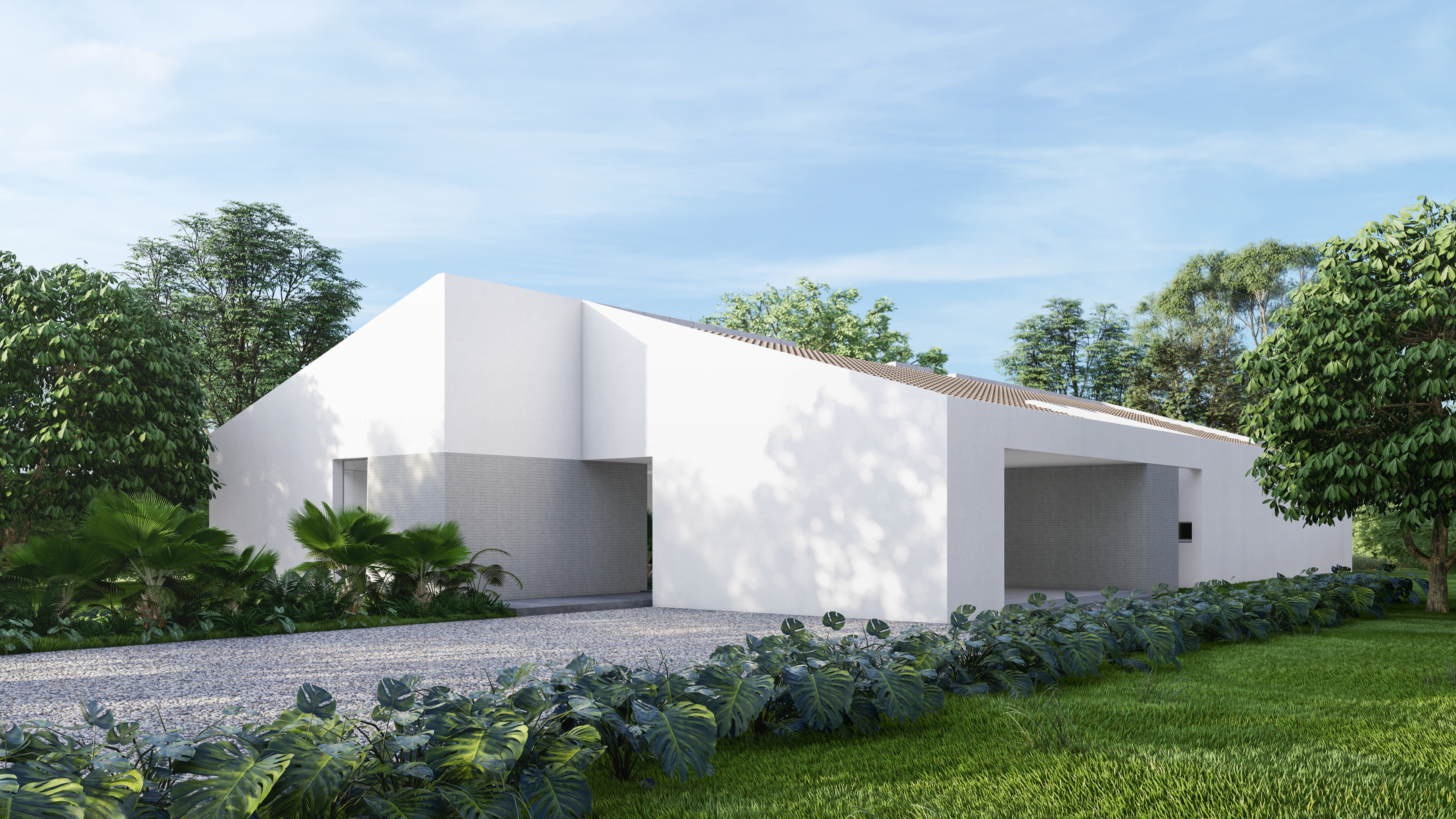 Additionally, it was intended to preserve a traditional appearance but brought to a contemporary setting. In this way, an archetypal volume was defined with a gabled roof made of clay tiles, but with a refined and simple appearance, forceful formal gestures were implemented and generous windows were proposed, which, as a whole, gave the project an austere but modern look.