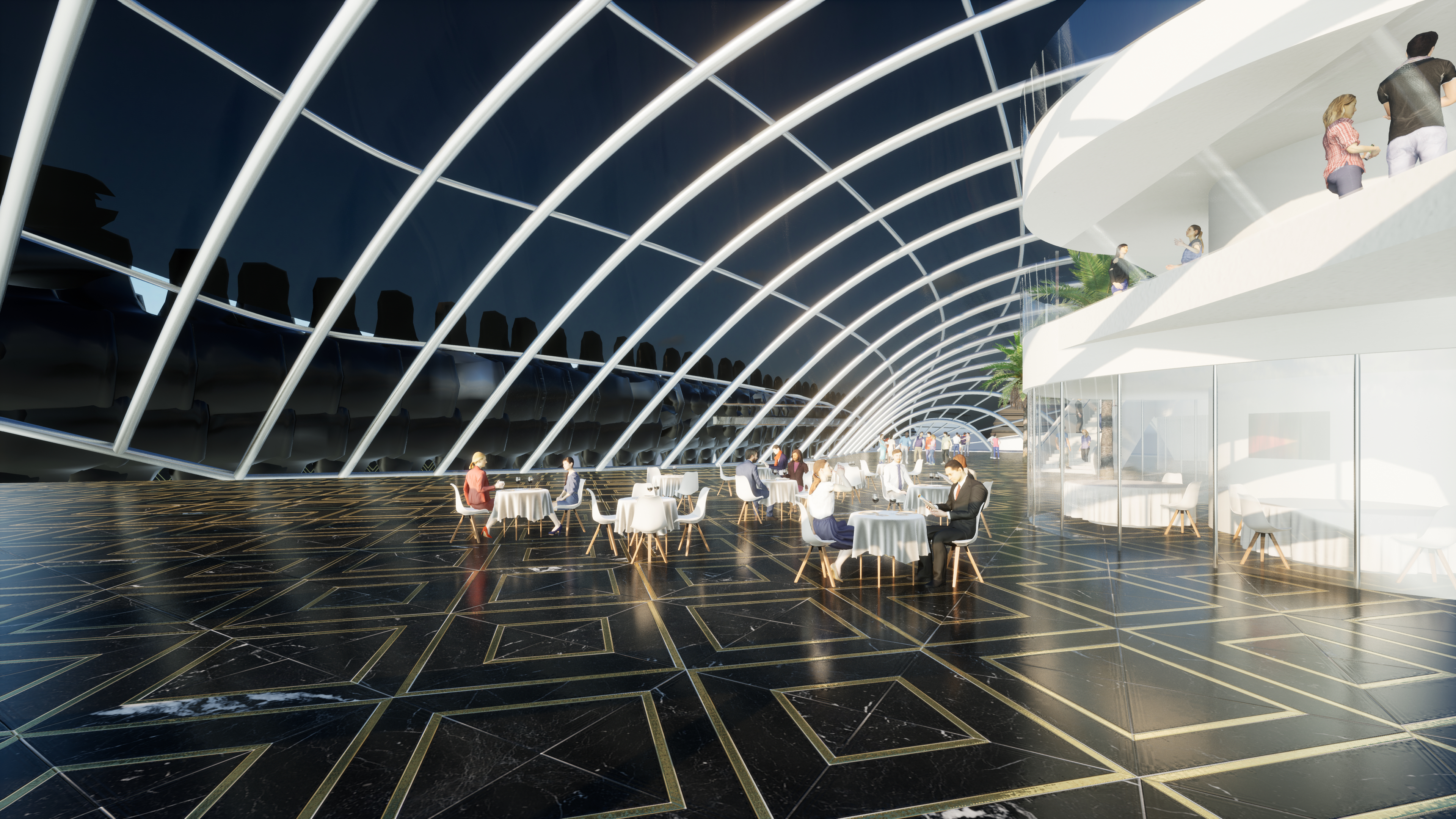 Located on Jeddahs’ corniche, rather than being just a breakwater to accommodate the logistics of the cruisers the concept of this cruise ship terminal changes radically as it enjoys 112 thousand square meters for other venues comprising major leisure activities and at once helps to redefine the skyline of the city. Income revenue stream comes not just from cruisers but from daily traffic from citizens.