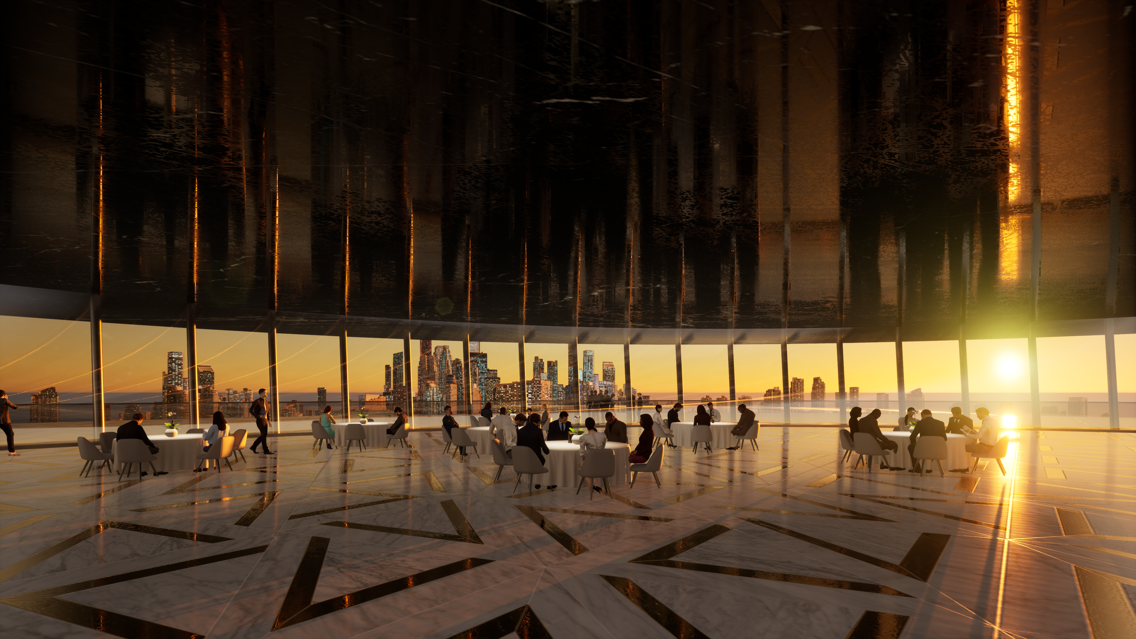 Corporate events in the spinning restaurant at night: