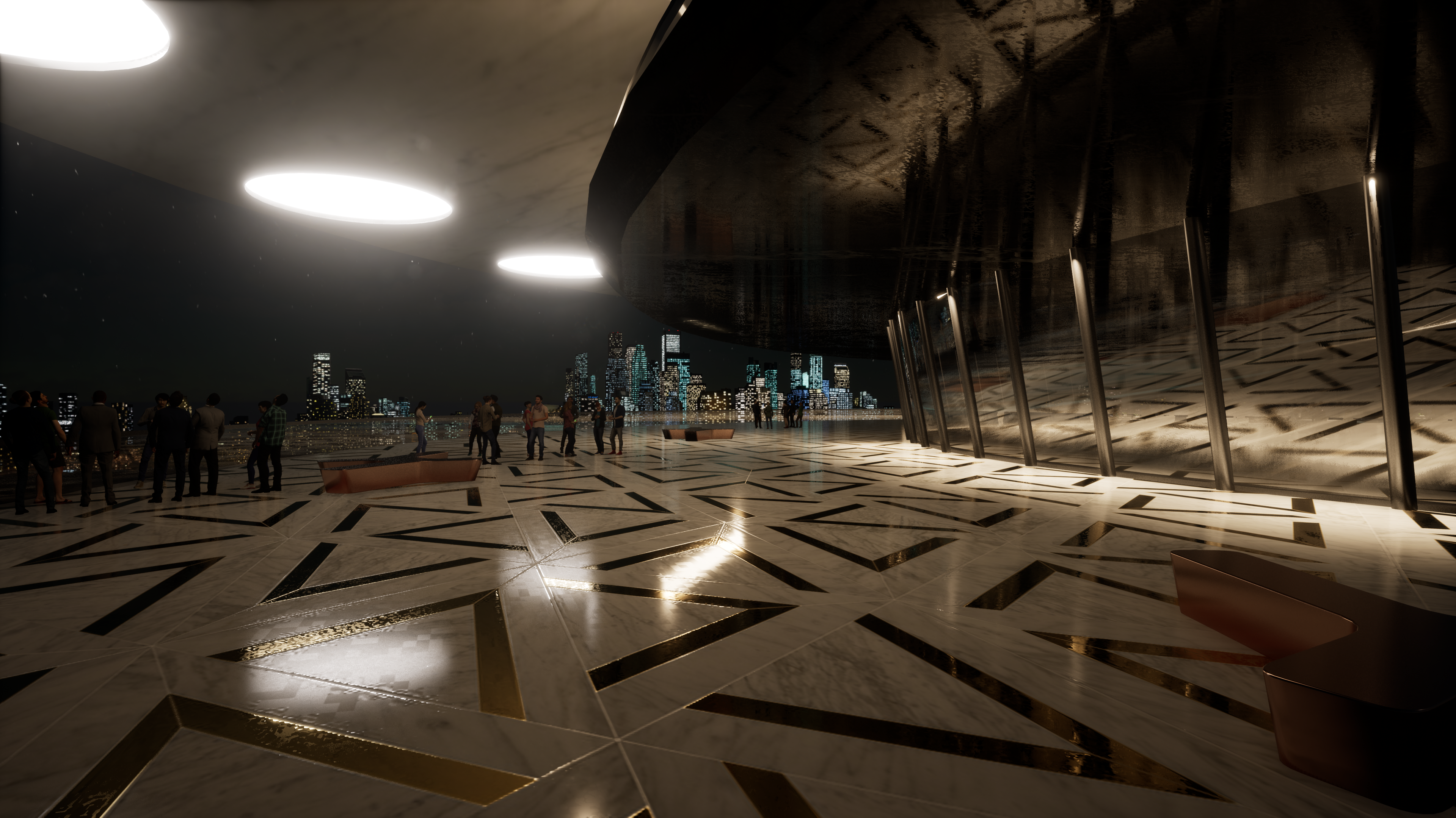 Momentum in this hotel with will show at is best at nightime as corporations will be able to reflect their brand logo from the restaurant to the street… a good 300 meters below of awesome advertising. Light and color show grand style.