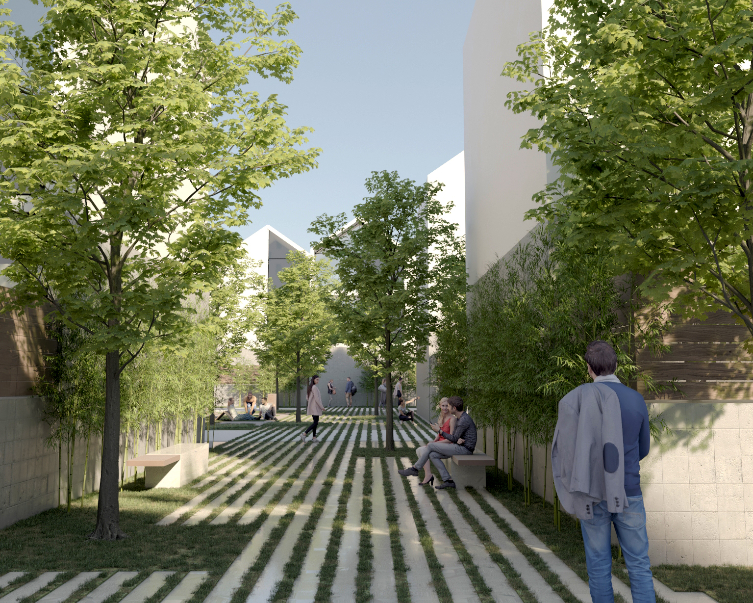 The ecological elements of green vegetation, at the same time that they act as an element of separation between the main streets and the most private Villas. Through architecture, a positive impact on the environment is created so that the intervention in the landscape enhances nature through textures, colors and aromas of a tectonic architecture that blends with the landscape. On the other hand, together with the common spaces, the residential program of a more public nature (Ecological masterplan), apartments and townhouses, is located, acting as a transition element between the public space and the more private Villas. At the furthest ends from the center of the town, the palaces will be located, having absolute privacy and privileged views of the city of Xi’An.
